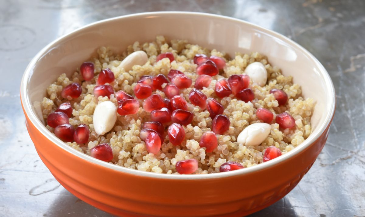 Bu tarifi 5 dakikada hazırlayıp 15 dakikada pişirip, her yere taşıyabilirsiniz! Lif zengini kinoa yeryüzündeki en iyi bitkisel protein kaynaklarından biri. Sihirli protein+lif birleşimi sayesinde tok tutuyor. Üstelik glütensiz! ÜZerine bir avuç nar serpip sağlığınıza sağlık katan muhteşem bir lezzet uyumu yakalayabilirsiniz. Daha ne olsun 🙂 Afiyetle, sağlıkla…